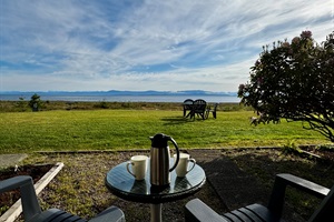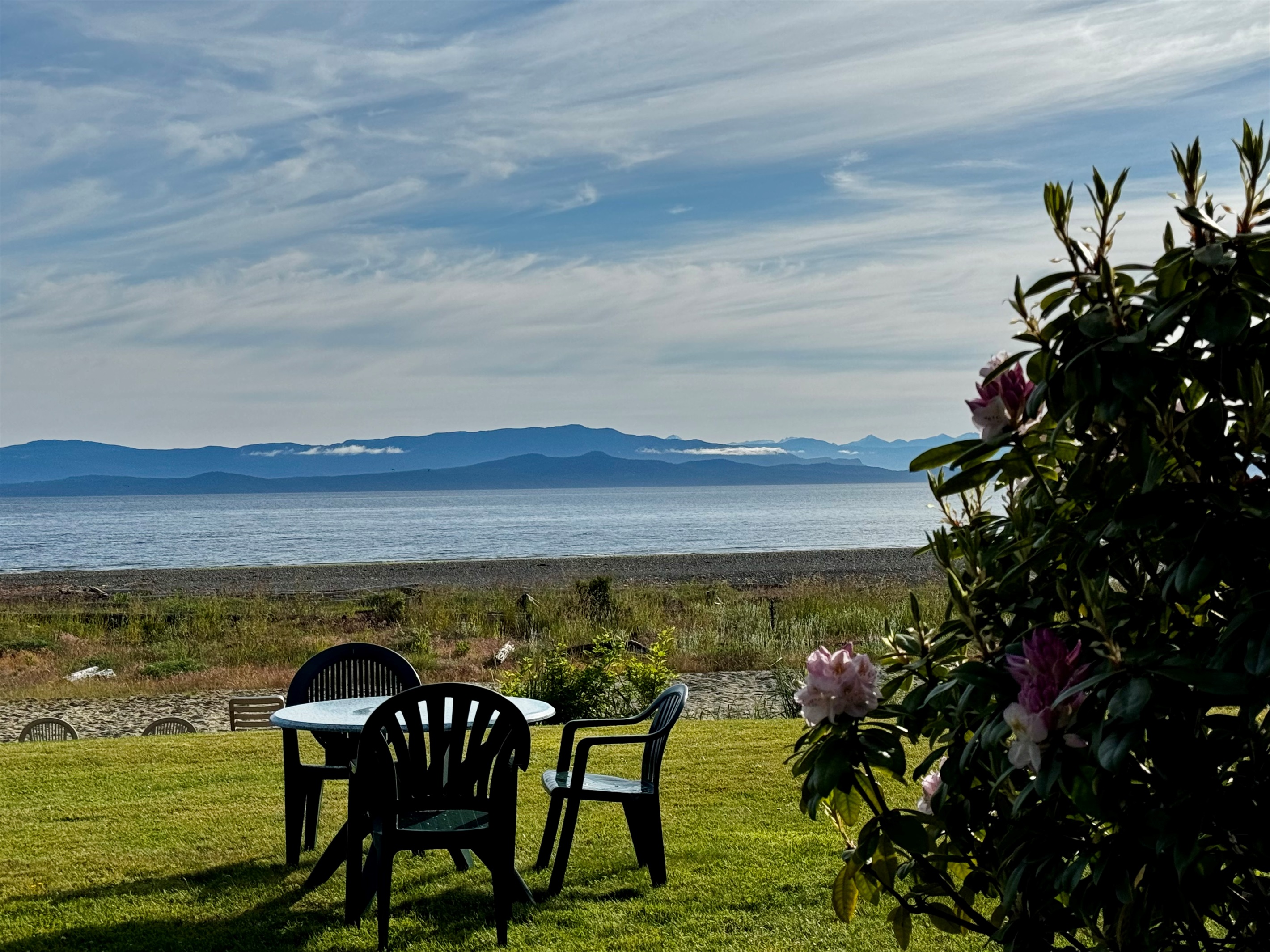 Recently updated, this suite includes modern amenities such as a spacious kitchen equipped with a dishwasher, ideal for preparing your favorite meals. The kitchen is fully stocked with everything you need for a comfortable stay. Enjoy the luxurious walk-in shower that adds a touch of comfort to your experience. From your private patio, take in stunning views of the Salish Sea, where you can unwind and witness amazing sunsets, serene walks, and opportunities for swimming and wildlife sightings.