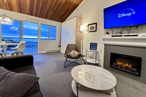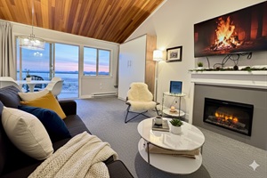 Licensed vacation rental at Shorewater Resort. Discover tranquility at this unique two-level ocean view loft. Breathtaking sunsets and views of the Salish Sea, islands, and wildlife. Spot bald eagles, sea lions, and maybe even whales. This quiet space is the perfect place for a relaxing getaway. With a queen bed up in the loft and a queen Murphy bed and queen sofa bed in the living room, sleeping options are plentiful. Modern kitchen, bright loft space, and private balcony. Unwind on the sandy beach or explore nearby restaurants, the sea wall, liquor store, and beach paradise. 5-minute drive to Downtown Qualicum.